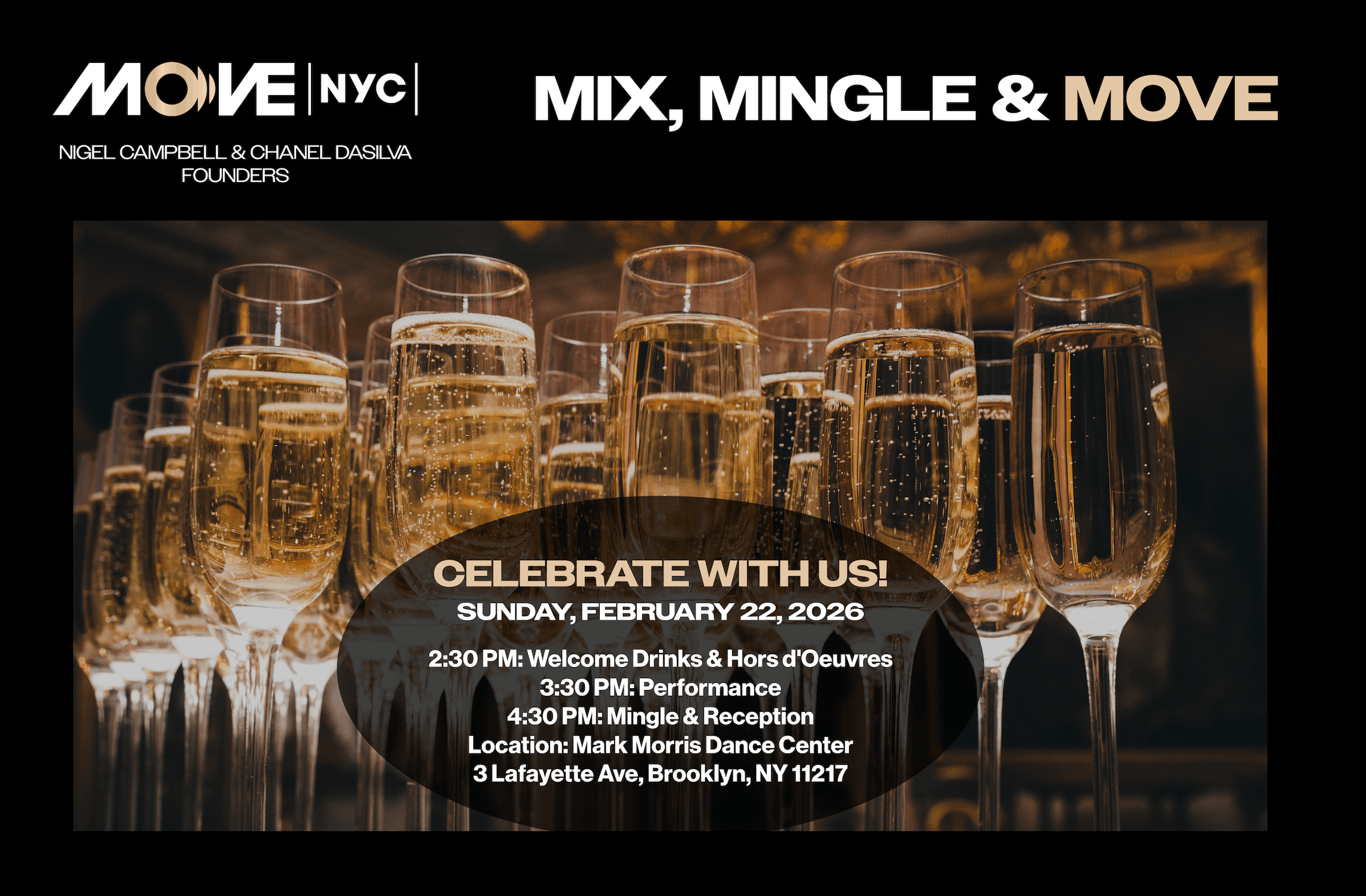 It's celebration time with MOVE|NYC|! We're thrilled to embark on Year 9 and we would love to commemorate this milestone with you! Join us for an exclusive evening of connection, cocktails, and exciting performances.